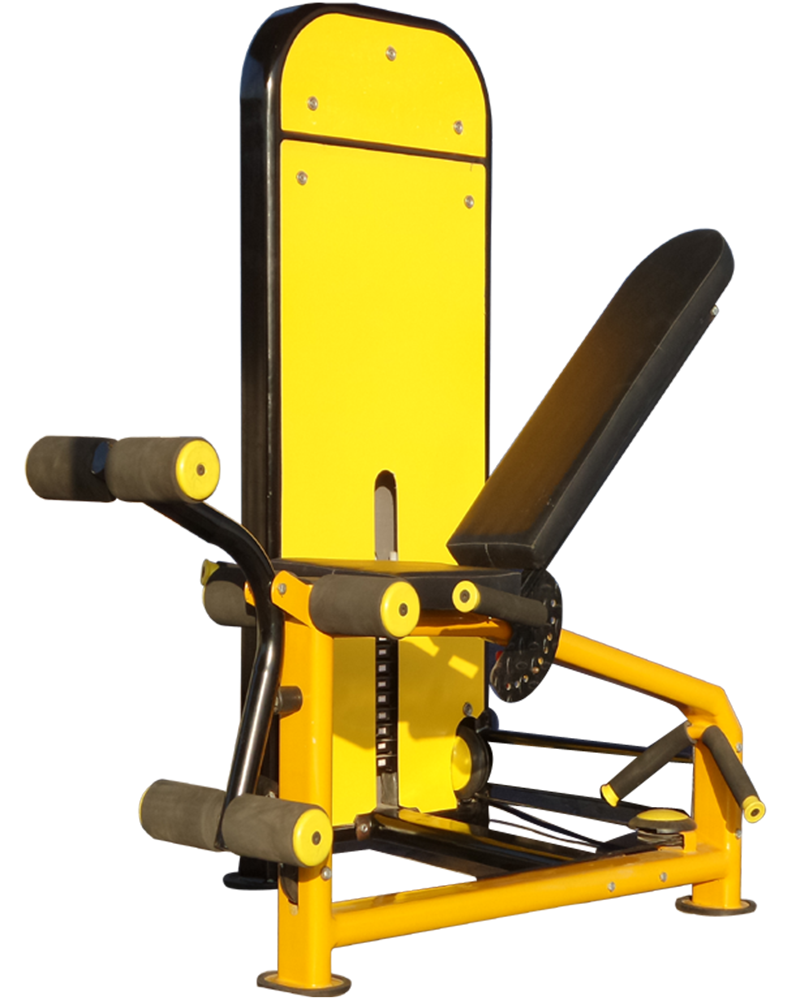 Leg curl and leg extension machines both exercise your legs, but each works muscles on different sides. Using a leg curl machine involves loading the muscles in the back or posterior of the leg. You either sit or lie down for this exercise, depending on the machine you use to bend your knee, or knee flexion. The leg extension machine involves straightening your leg against resistance and working the muscles on the front or anterior of the leg.